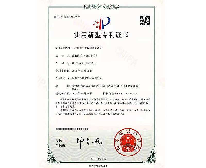 三勝環保的產品擁有的知識產權,可為用戶提供大氣除塵(脫硫、脫硝、異味凈化),水處 理等環保設備的設計。
